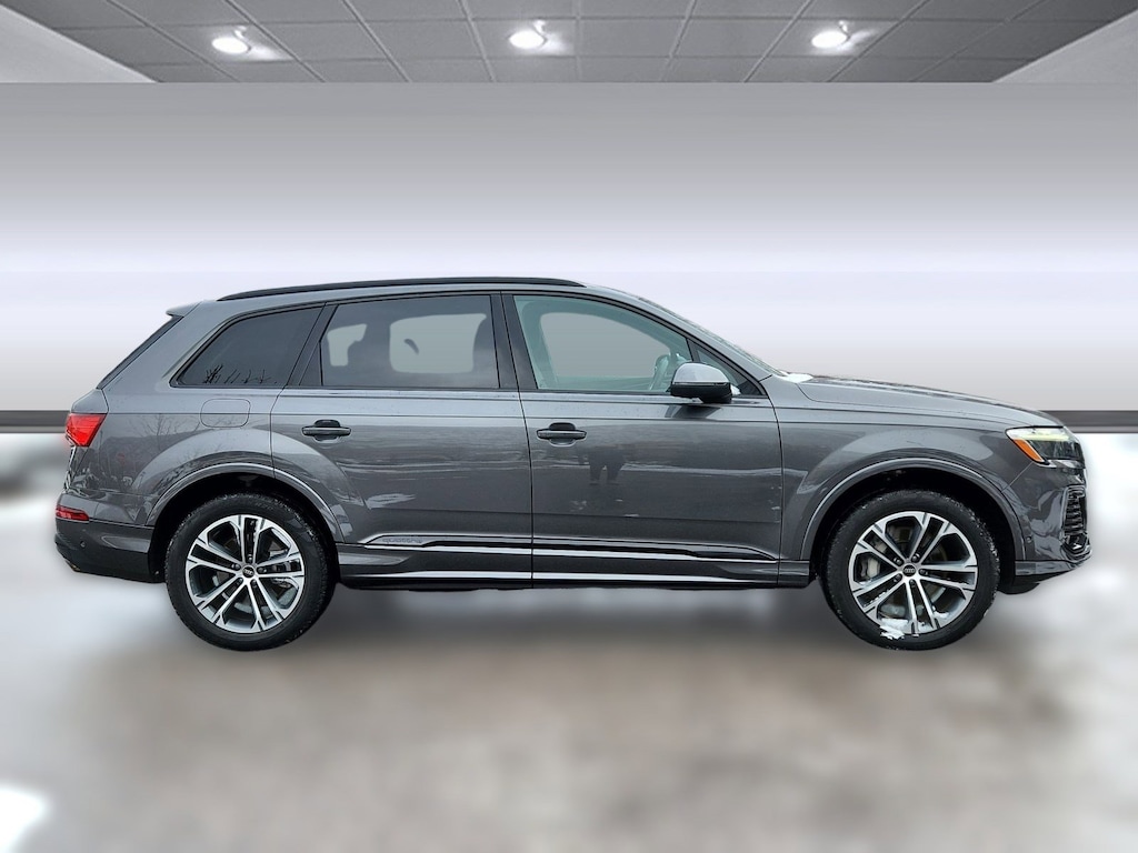 Our One Owner Samurai Gray Metallic 2025 Audi Q7 45 Premium Plus quattro rewards you and your family with exceptional luxury and versatility. Motivated by a TurboCharged 2.0 Liter 4 Cylinder offering 261hp tied to an 8 Speed Automatic transmission. Taking on your day is a pleasure within this All Wheel Drive SUV thanks to its ability to score up to 25mpg on the highway, smooth ride, and responsive handling. You'll also love how our Audi attracts attention with its aerodynamic bodywork accented with a panoramic sunroof, adaptive matrix-LED headlamps, and distinctive alloy wheels.